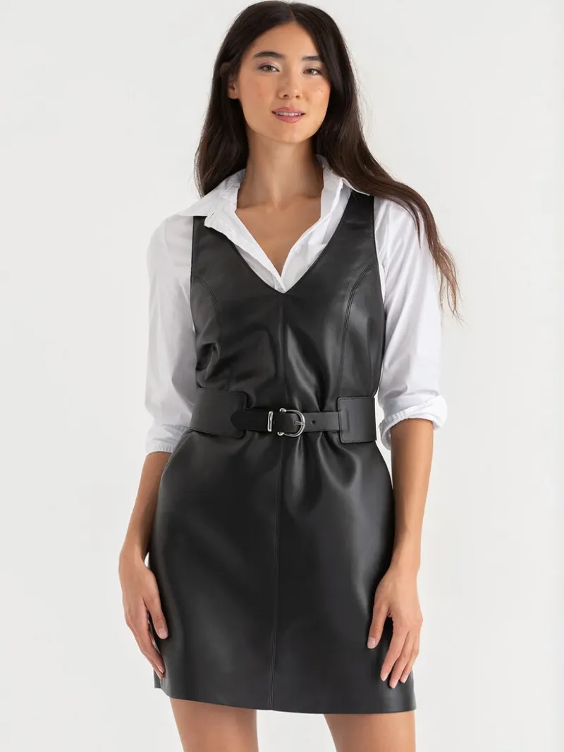 This wide belt is here to help you add shape and interest to dresses, sweaters, and more. It’s made from durable faux leather with a metallic buckle. Cinch it over loose or relaxed garments for some definition.