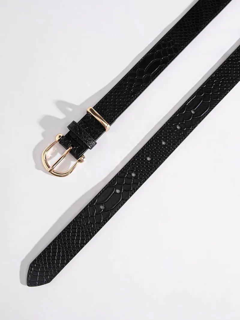 With a rounded metallic buckle and textured faux snake skin pattern, this belt offers a versatile and classic look with just the right amount of edge.