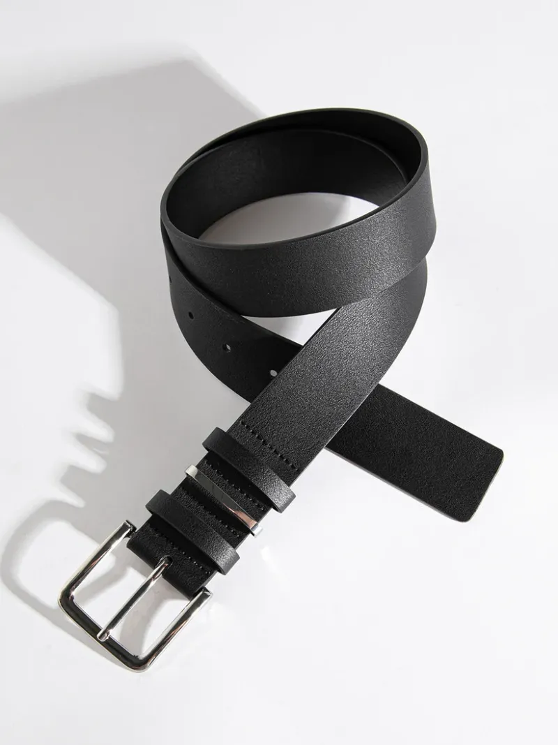 The Wide Square Buckle Belt in black features a striking silver 2″ x 2″ square buckle, adding a bold touch. Available in sizes XS to XXL.