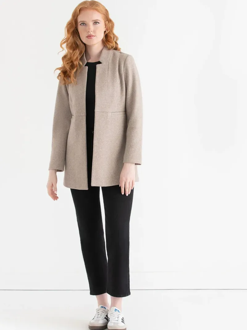Putting a modern twist on a timeless design, this versatile long line felt jacket is the polished layer your fall and wi…