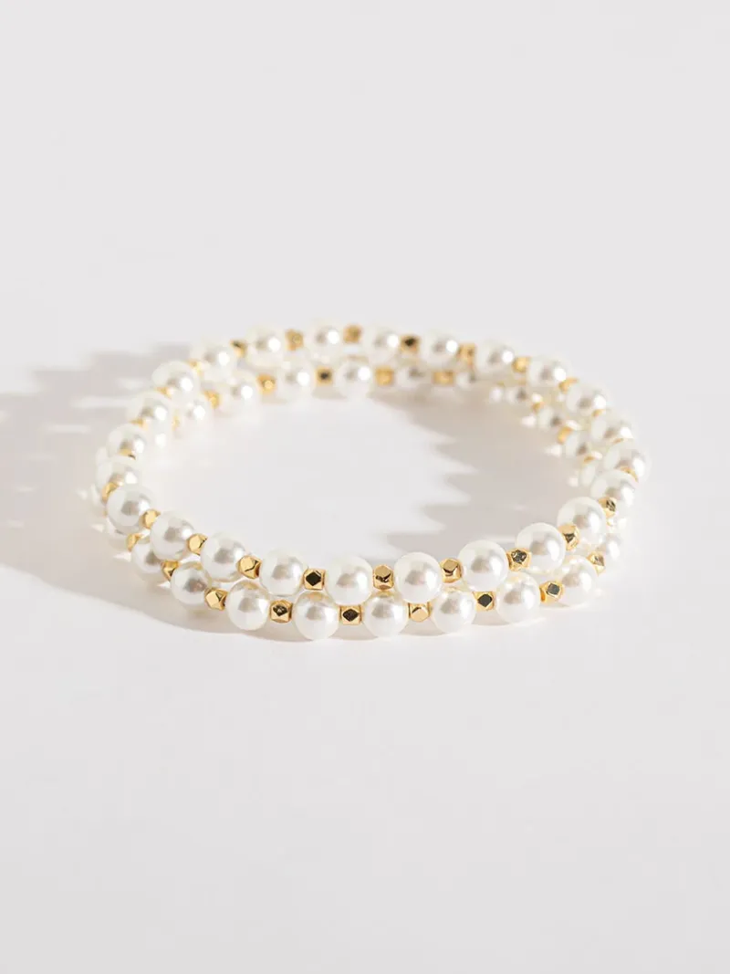 Don’t leave your wrists naked. These pearl and gold metal bracelets have a stretchy fit, so practically anyone can wear …