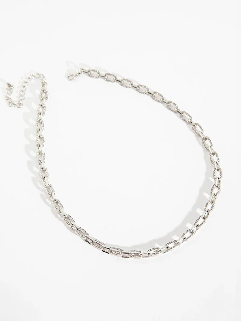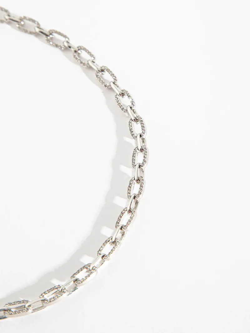 Sparkle and shine with this pave chain link necklace, featuring small crystal studs inset on one side of each link.