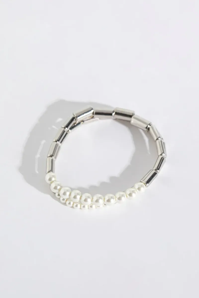 The Pearls and Tubes Bracelets Set features chic faux pearls with gold or silver tubes on stretchy, lead and nickel-free bands for easy, stylish wear.