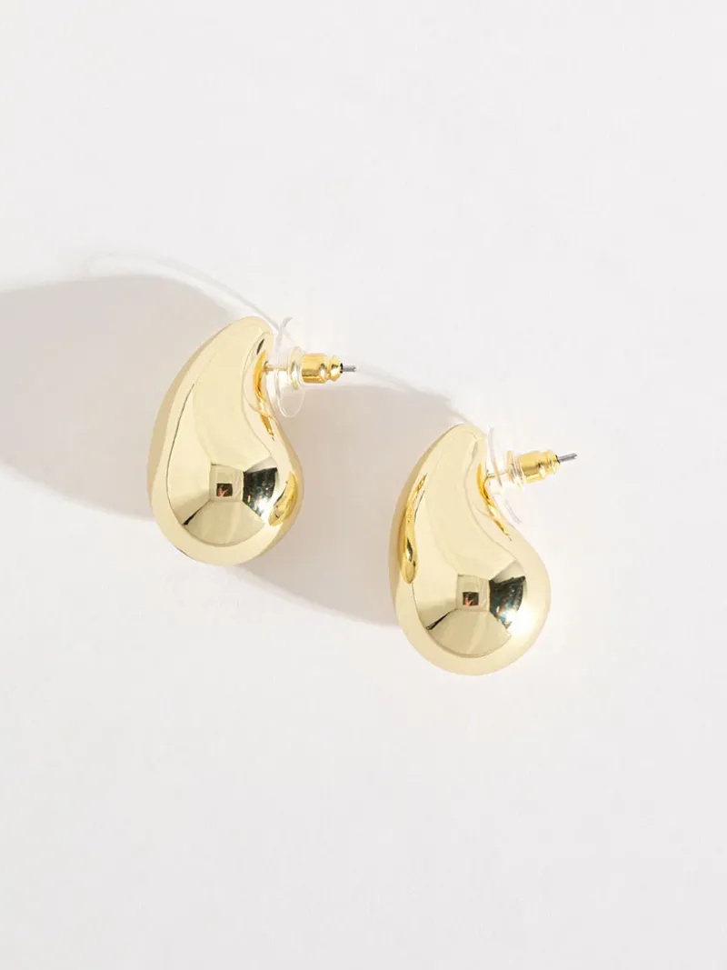 Bold shine. These gold dome teardrop earrings have a high-polished shine and are the perfect outfit enhancement.