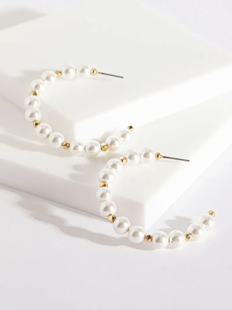Hoop dreams. These are large, lightweight hoop earrings that have ‘pearls’, separated by gold metal accents. Two things that never get old: Hoops and pearls.