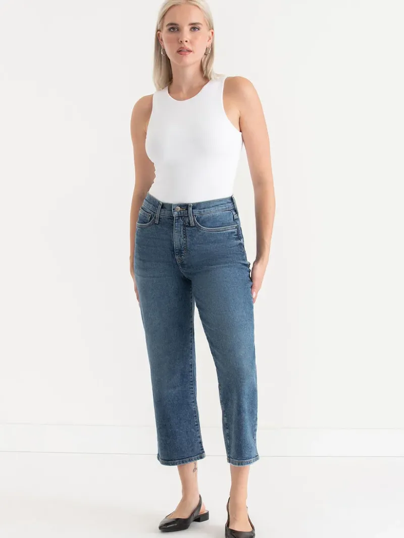 Crops are hot. These are the cropped length version of our Lucy straight leg jeans. Made with a 90s-inspired silhouette that’s loose and straight but not baggy, they’re a comfortable and trend-resistant style for your denim collection.