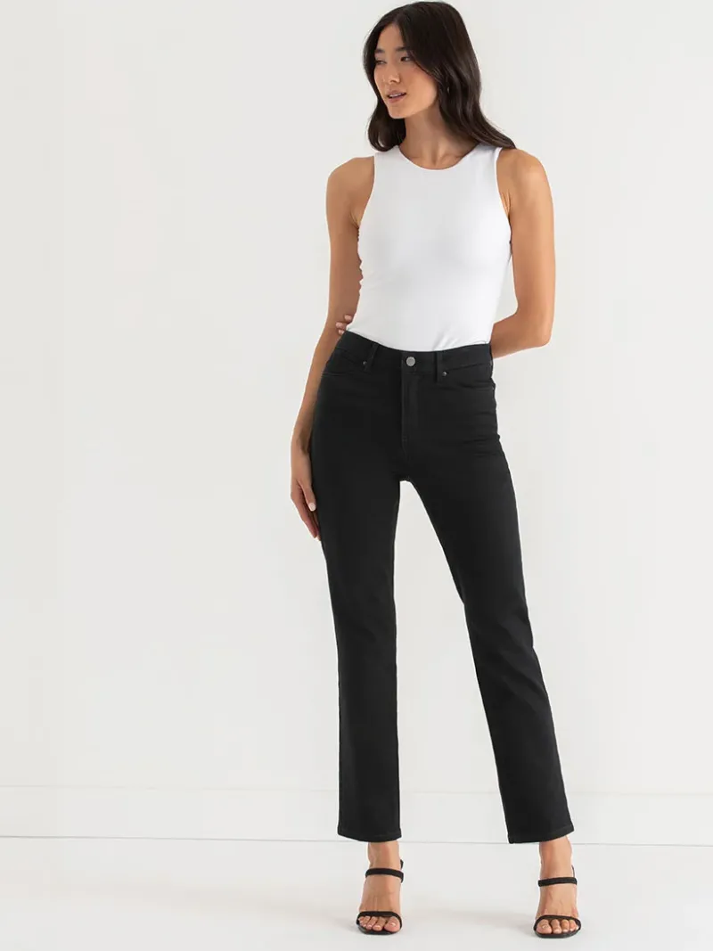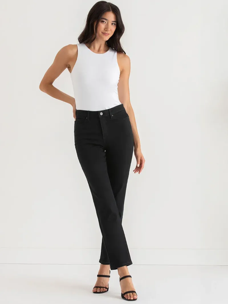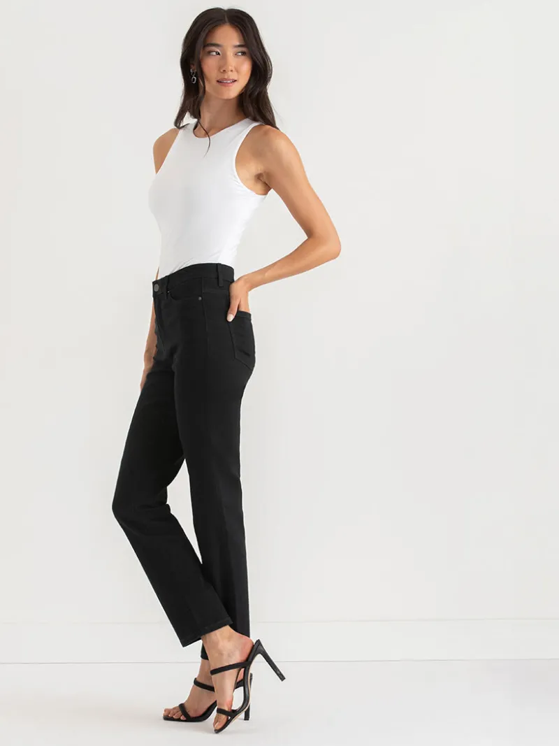 Meet the Stevie Straight Leg Jeans in black – your new curve-loving BFFs. With a custom-fit waist and instant control pockets, these full-length wonders are more than jeans; they’re like your personal confidence boosters in fabric form.