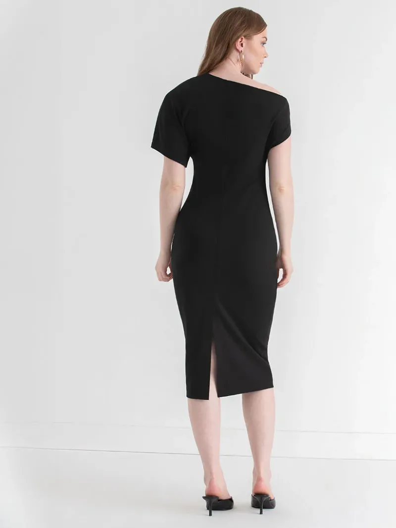 Uneven and effortless. The high-low sleeve design on this midi dress creates a dynamic silhouette that’s formal but bold, making it an easy go-to for weddings, holiday parties, and more. It’s made from Iconic Crepe, our luxurious fabric with a comfortable, form-accentuating stretch and elegant drape.