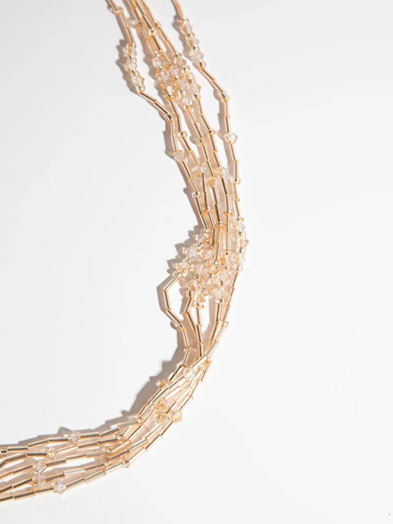 This five-layered bead necklace brings a bold, textured touch to any look with its intricate, stacked design. Wear it on its own for a subtle statement or layer it with your other favourites.