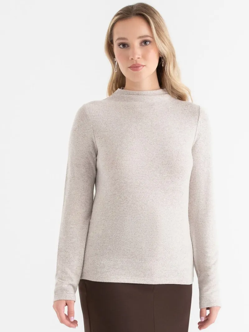 This mock neck top brings a soft, sleek vibe to your everyday style. With its soft Hacci knit fabric and mock neck design, it’s an easy piece to layer or wear solo for a polished, no-fuss look.