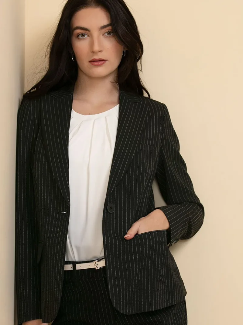 This is a lined, sleeveless, and gracefully drapey blouse. The pleated neck detail brings a dash of polish while the curved hem lands just where your hip wants it to. It’s a versatile piece that can be dressed up or down.
