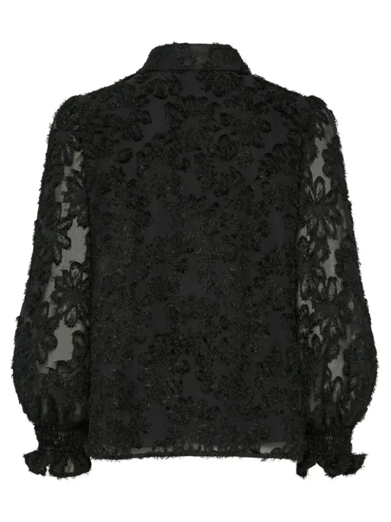 With floral jacquard detailing, button front, and collar neckline, this is a fun and feminine but dressed-up shirt for all your work and weekend needs.