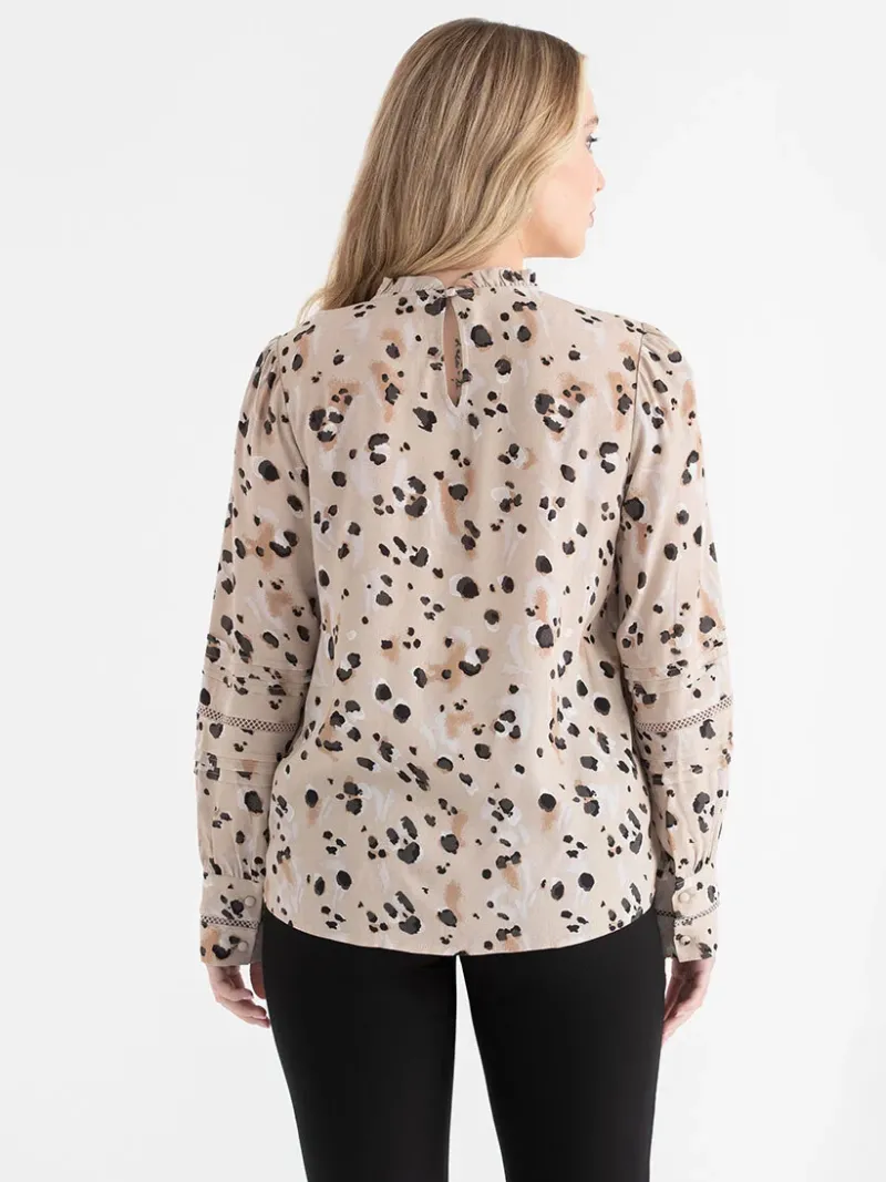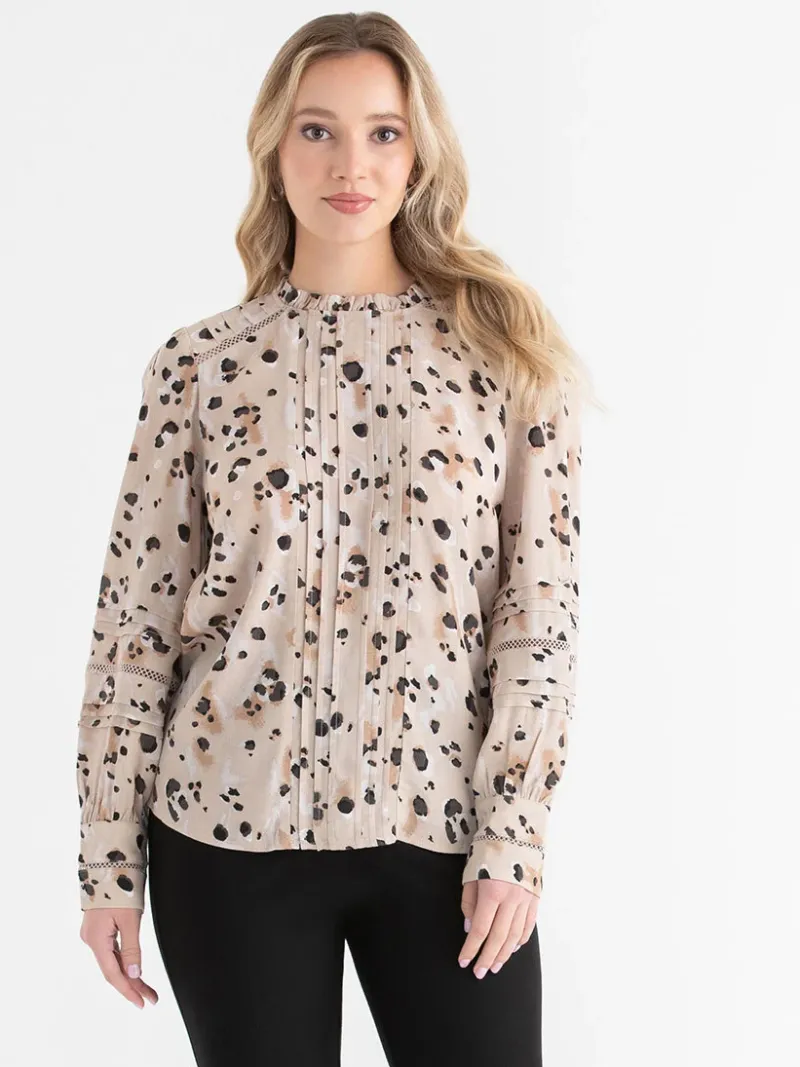 Relaxed yet refined, this blouse has an easy elegant vibe. The ruffle neckline and lacy pintuck detail bring just enough softness to balance out your day-to-night look.