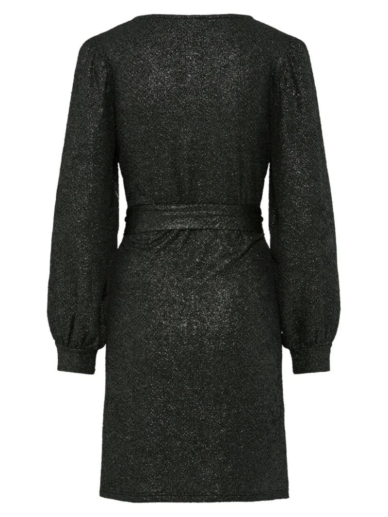 Shimmer and shine in this short V-neck dress with long sleeves and a cinched waist tie, perfect for turning heads at your next night out. NOTE:Pieces sizing may be slightly different than Ricki’s. Please view the Fit Guide to get the perfect fit.
