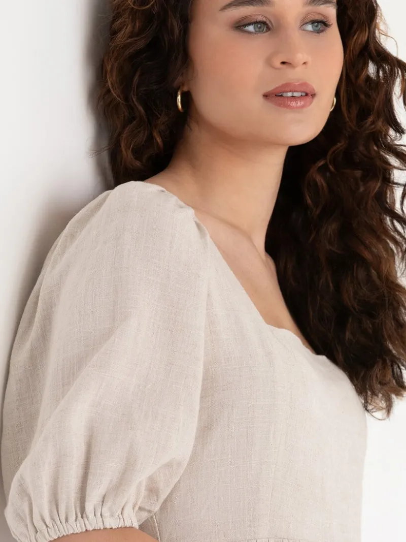 This linen mini dress is all about fun and feminine warm weather vibes. With playful puff sleeves and breezy linen construction, it’s an easy choice for resort getaways or summer weekends.