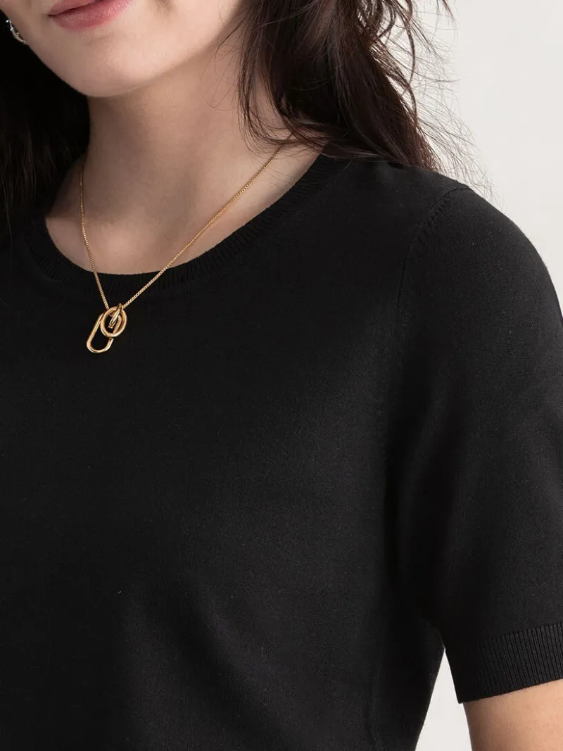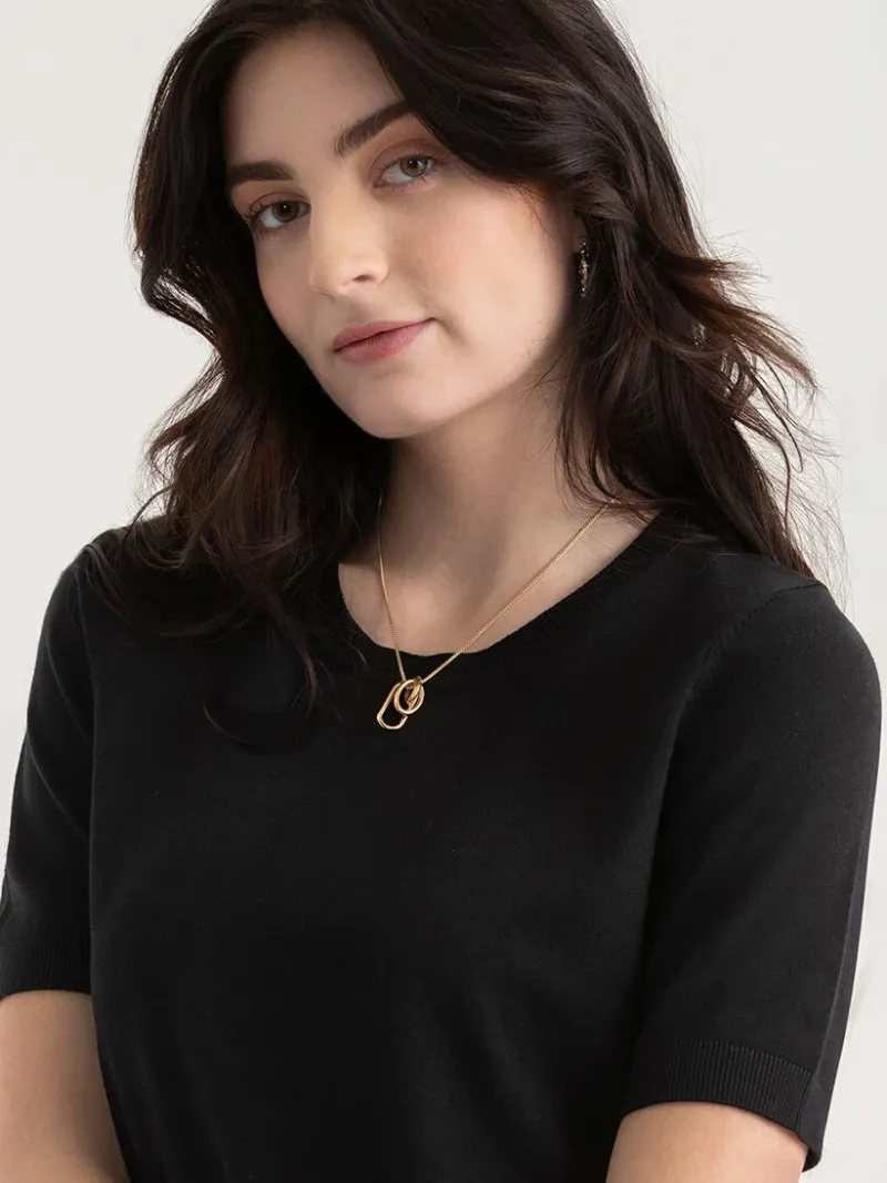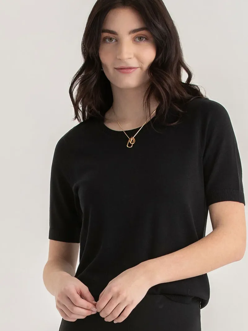 Just in time for spring, the perfect layering sweater. This lightweight sweater has the perfect length sleeves—not too long, not too short. This is the kind of sweater that looks great under a blazer because it’s not bulky at all and it comes in a variety of colours that you can’t help but love.