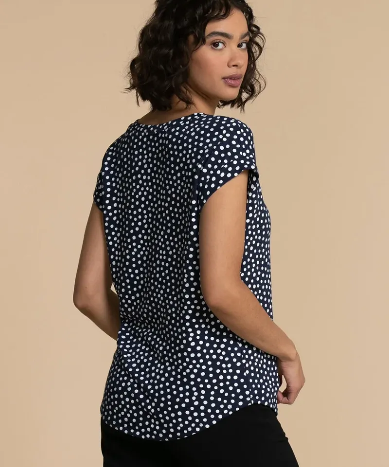Not your typical tee. A relaxed everyday piece, this versatile t-shirt features a V-neck and angled short sleeves. It’s made from Hacci, a super-stretchy sweater knit fabric that works for any season.