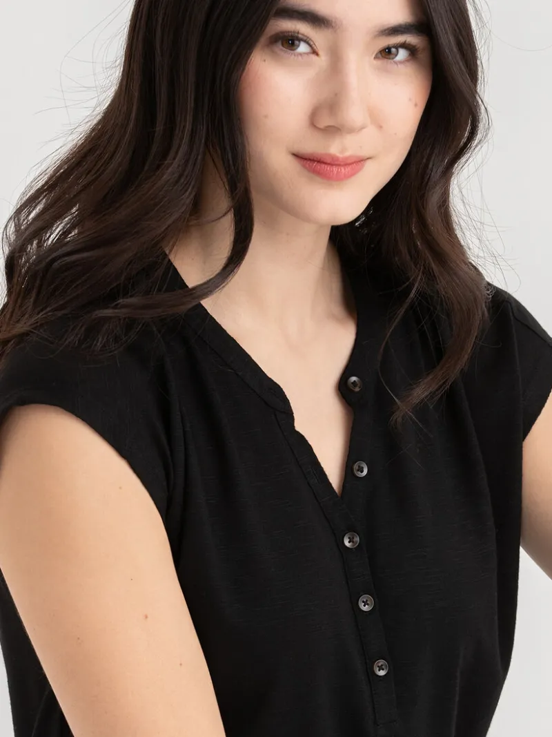 Looking for something casual that you can feel great in? Our Henley T-Shirt is just that. It’s made with recycled polyester and rayon so you can feel good about saving the planet while looking great and relaxed at the same time! The button-down placket and shirttail hem are stylish additions. And with so many colours to choose from, you’re bound to find one (or two) that catch your eye.