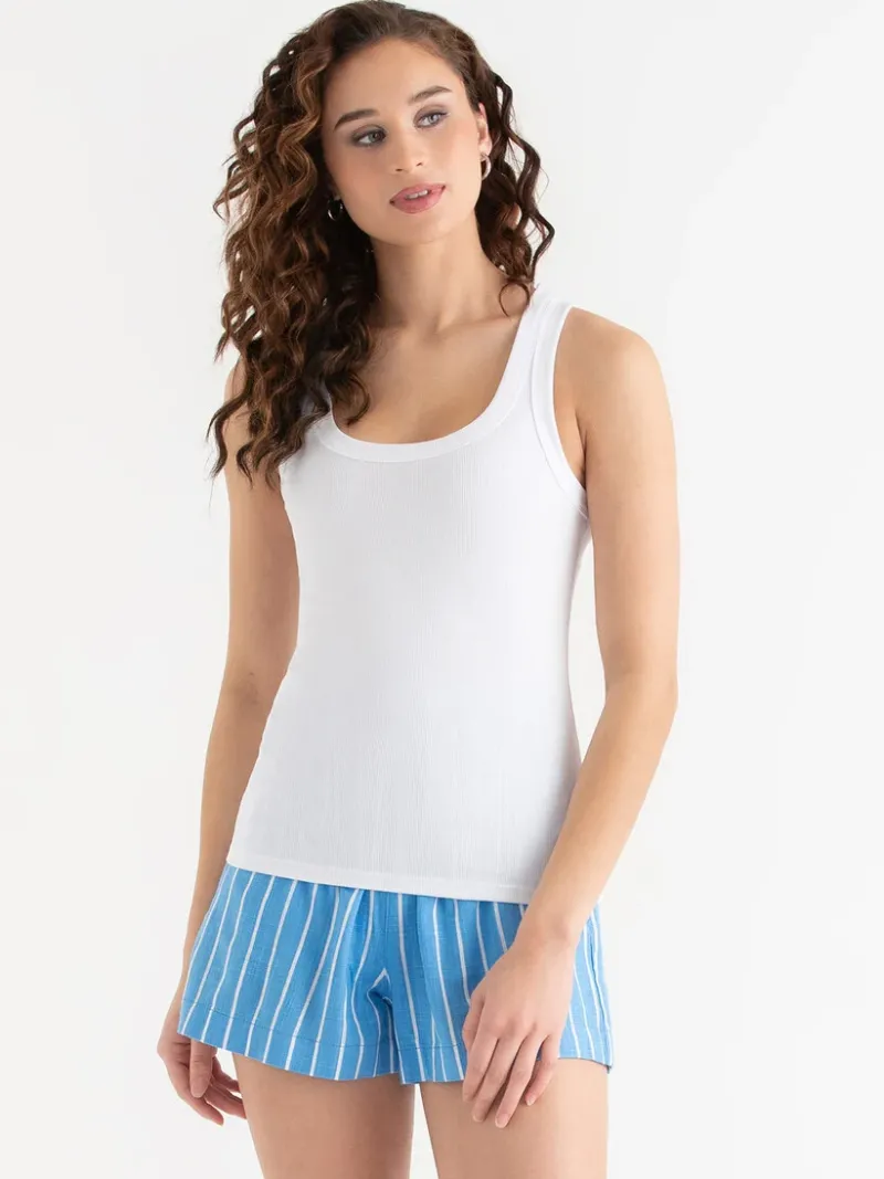 Our classic scoop neck tank top comes in a super soft cotton-modal blend with a form-fitting but comfortable stretch. It…