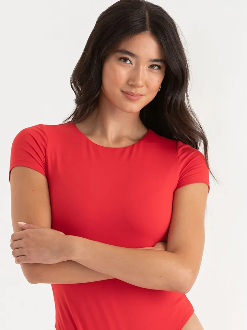 A second skin. This short sleeve crewneck bodysuit comes in a variety of colours and looks super cute with jeans, high-w…