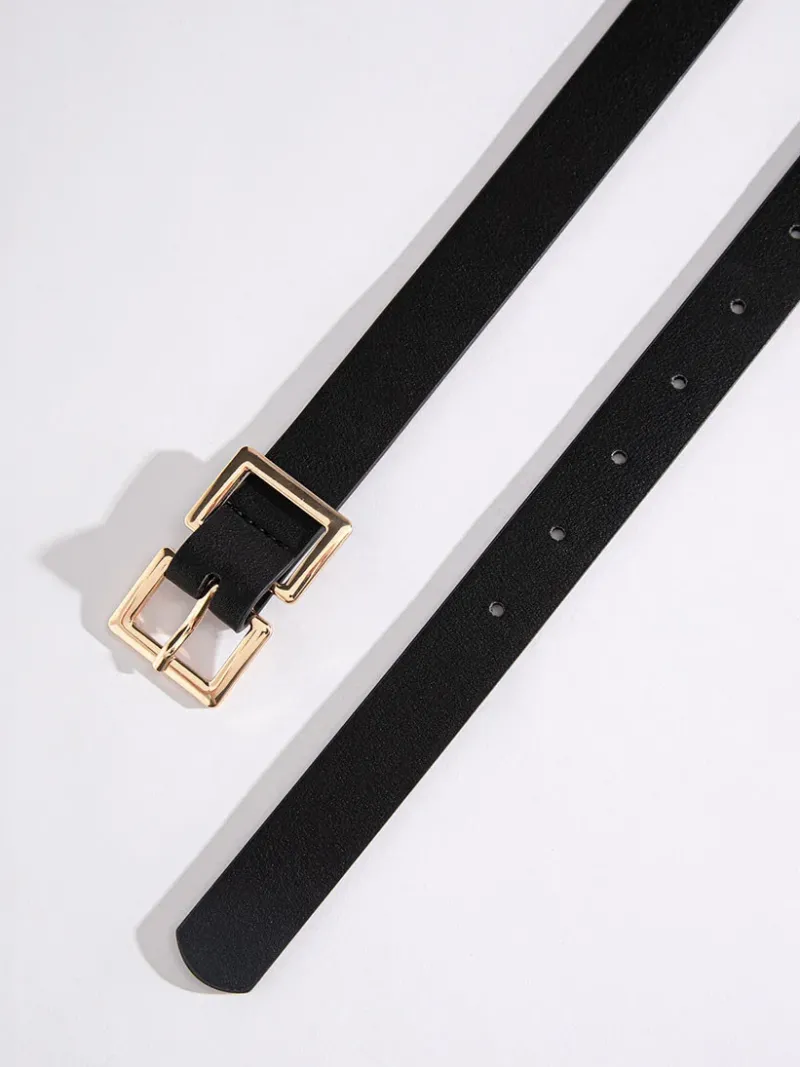 With a modern but timeless double square buckle and durable faux leather band, this is a versatile belt you’ll reach for again and again.