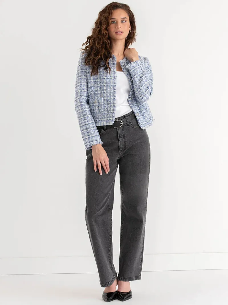 Inspired by the classic designer style, this cropped boucle jacket is a versatile and timeless piece