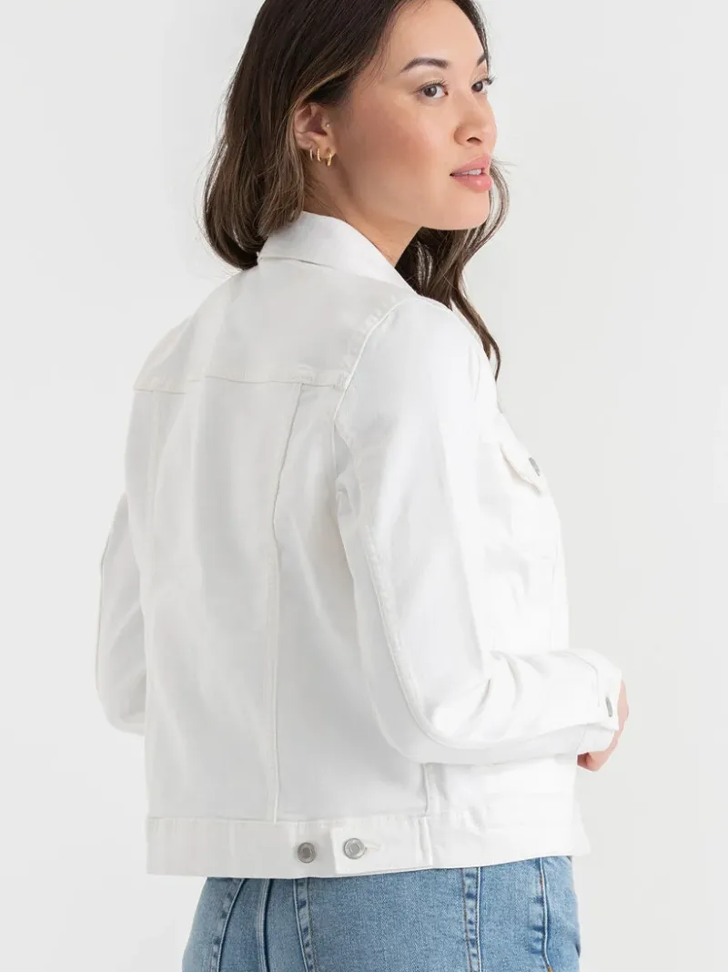 This jean jacket comes in the timeless trucker style with all the classic details you’d expect including chest pockets and button waist tabs. Made from hardy denim, it’s a versatile and durable piece for all-season styling.