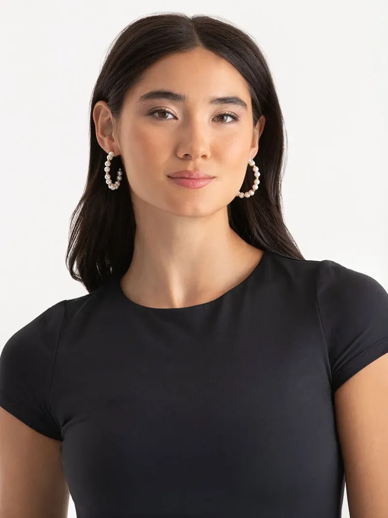 Hoop dreams. These are large, lightweight hoop earrings that have ‘pearls’, separated by gold metal accents. Two things that never get old: Hoops and pearls.