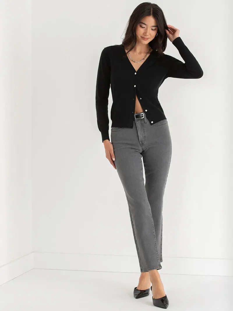Stevie is our signature straight-leg jean, offering a versatile and timeless silhouette. Fitted through the hip and thigh, the high-rise style gives you long, lean lines for legs that go on forever. It also features a smoothing waistband for a no-gap fit.