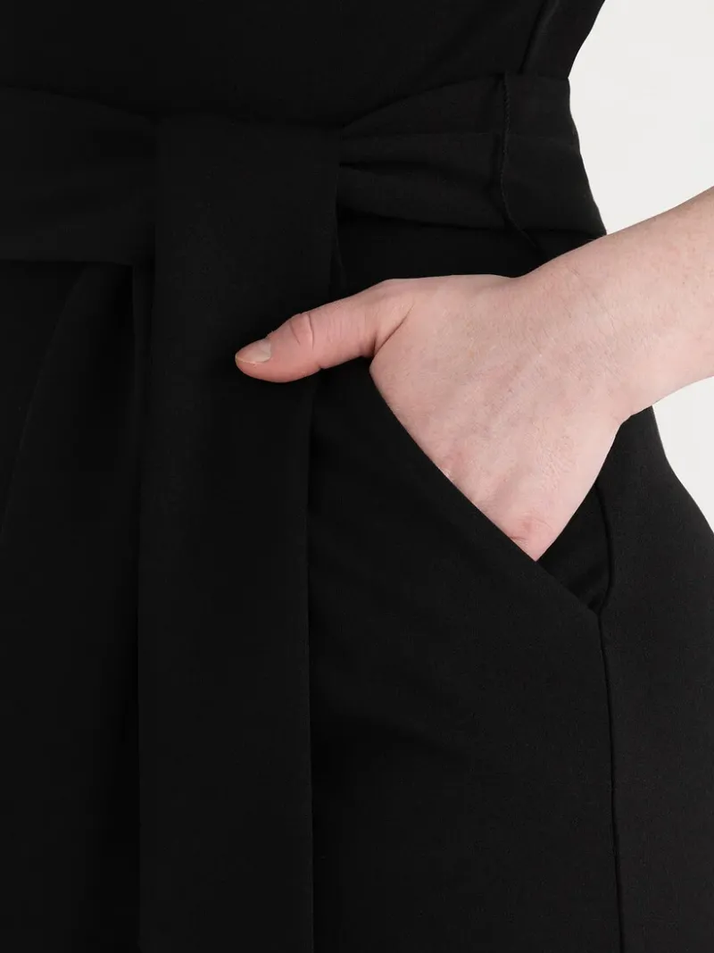 This wide-leg jumpsuit combines easy elegance with just the right amount of drama. It features a flowing silhouette, han…