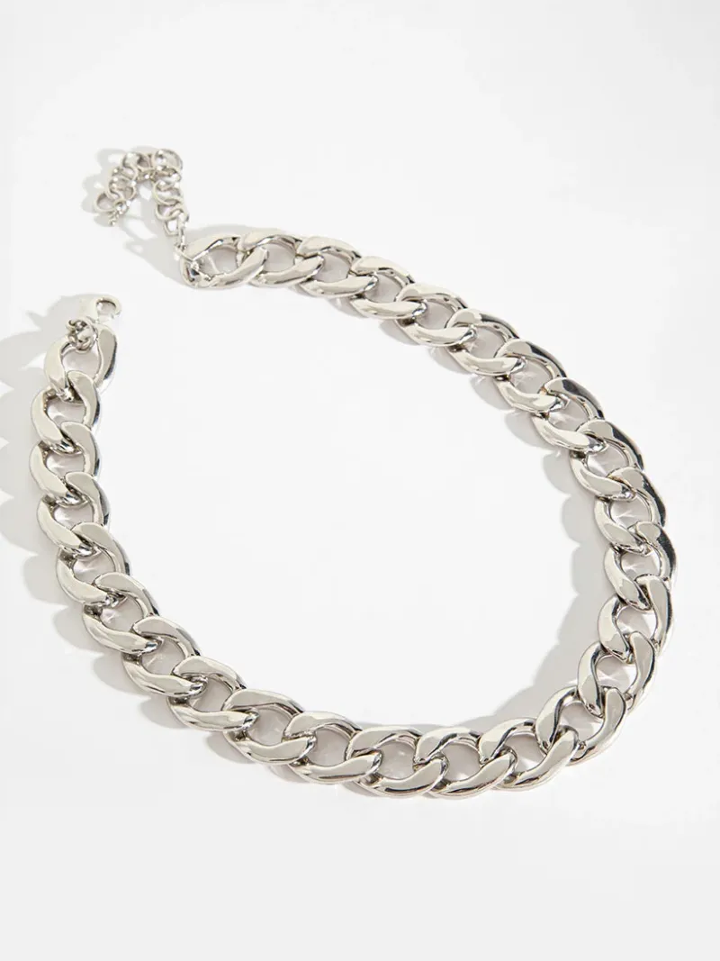 Make a bold statement with this silver chain-link necklace. It’s the perfect indulgence for your edgy side.