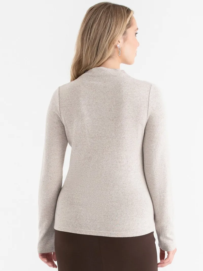 This mock neck top brings a soft, sleek vibe to your everyday style. With its soft Hacci knit fabric and mock neck design, it’s an easy piece to layer or wear solo for a polished, no-fuss look.