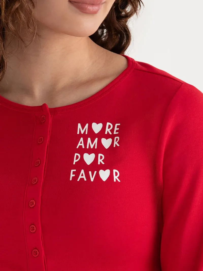 The Long Sleeve Fitted Henley hits around the upper hips with a crew neck, button placket, long sleeves, and a straight hem for a comfortable, stylish fit.