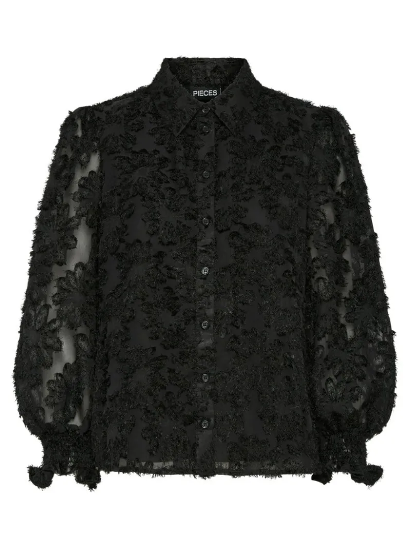 With floral jacquard detailing, button front, and collar neckline, this is a fun and feminine but dressed-up shirt for all your work and weekend needs.