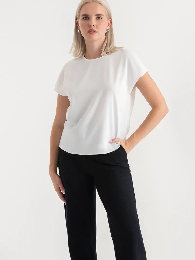 Check out this easy and elegant top with a flowing and versatile silhouette. It has year-round styling potential for work or weekend looks.