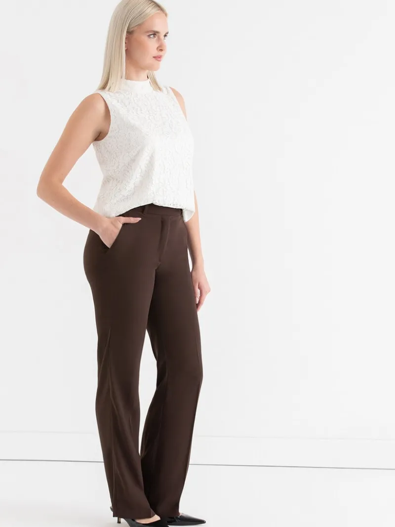 This sleeveless mock neck blouse can add an elegant touch to any look with its lacey shell and sophisticated silhouette. Perfect for work or evenings out, it’s an easy and refined addition to your wardrobe.