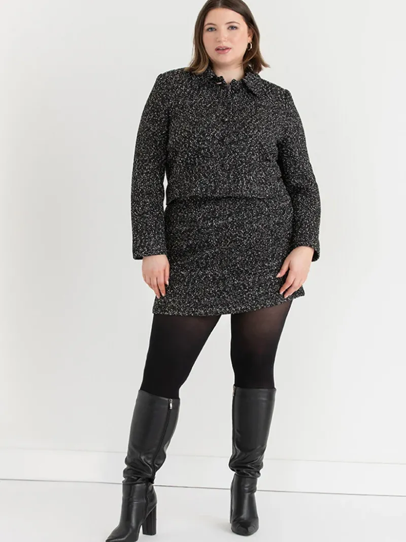 Featuring elevated boucle construction, handy front pockets, and a soft lining, this is the dressed-up mini skirt your wardrobe’s been missing.
