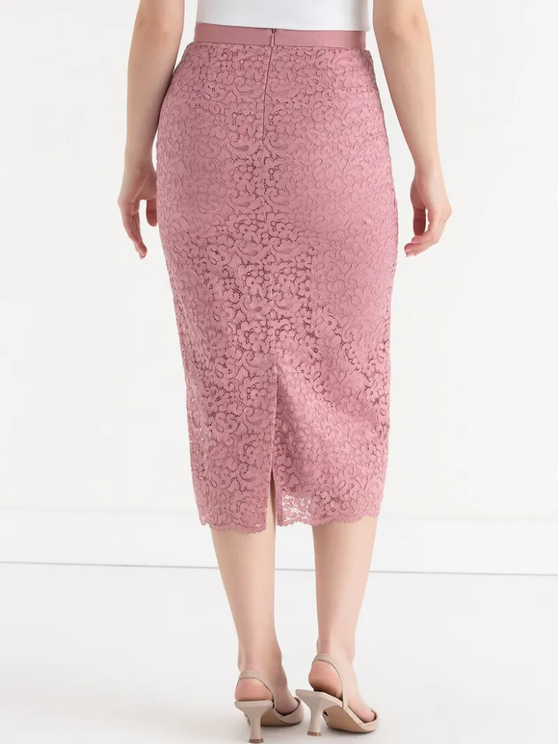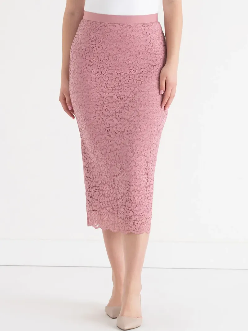 This lacy midi skirt is an easy way to bring a fun and feminine touch to any look. Featuring delicate lace over a satin lining, it’s a playful piece that’s easy to dress up or down.