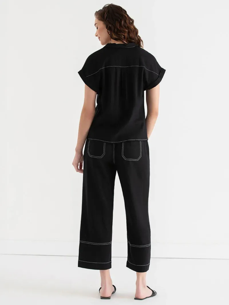 The Linen Button Up Top is your go-to vacation piece with its cool linen-blend fabric, flattering hip-length fit, and relaxed, stylish details—ready to join you on any winter getaway.