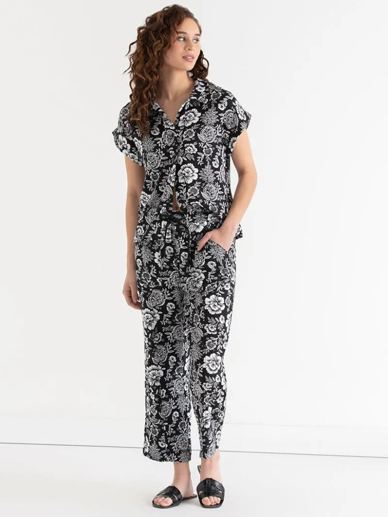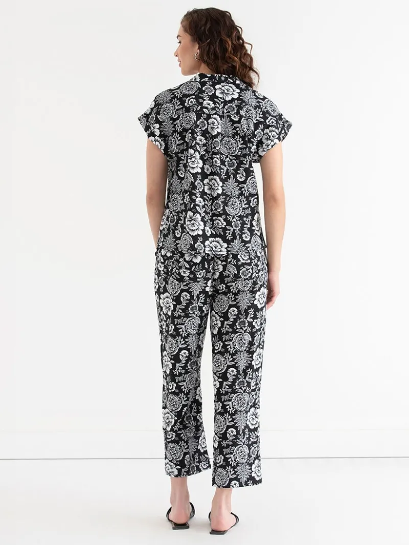 The Linen Button Up Top is your go-to vacation piece with its cool linen-blend fabric, flattering hip-length fit, and relaxed, stylish details—ready to join you on any winter getaway.