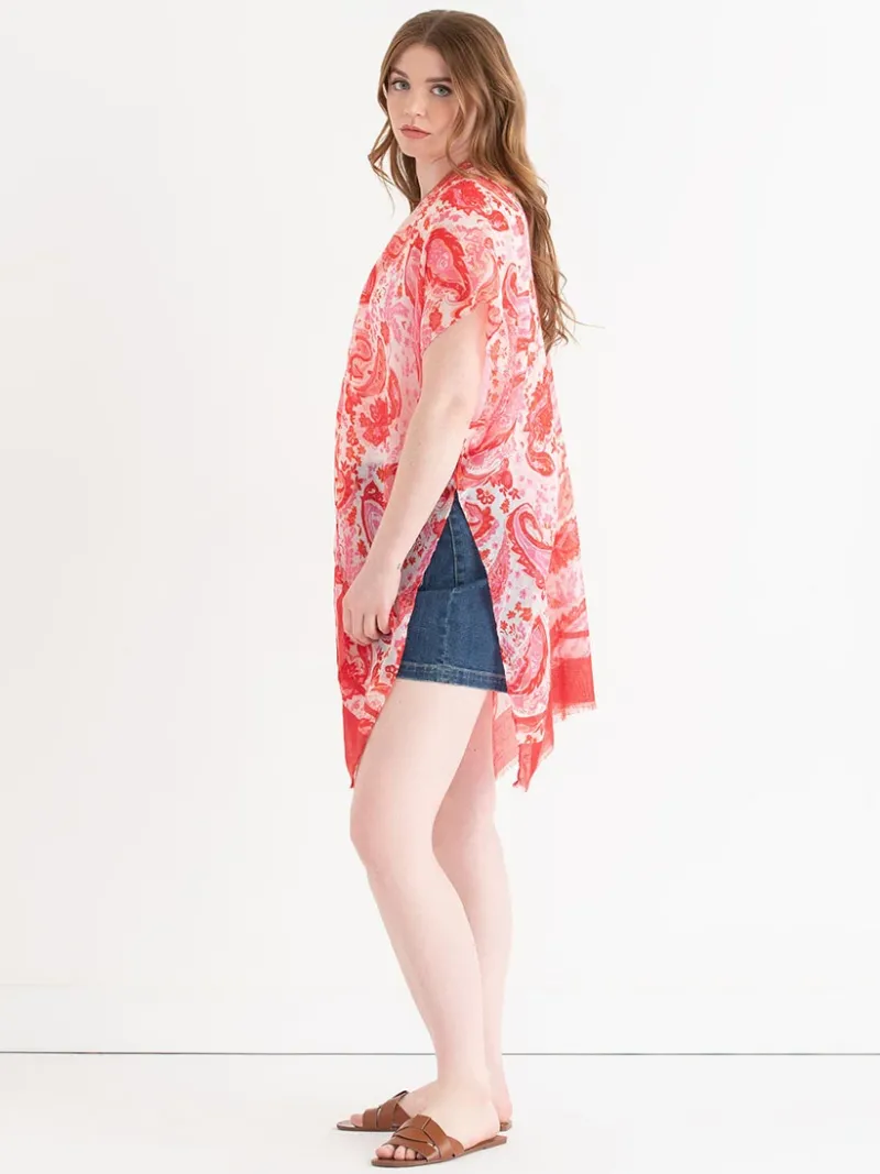 Throw on this light ruana for an instant touch of easy elegance. With its breezy fabric and soft paisley pattern, it’s the kind of layer that makes any outfit look planned, making it an easy choice for beach days, brunches, and everything in between.