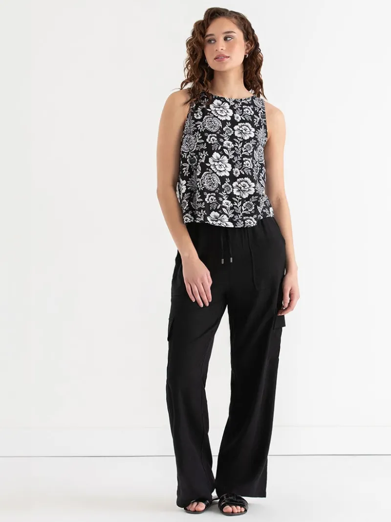 This linen tank top adds a little something extra to your look with a back button detail. Casual but refined, it’s perfect for resort getaways and the summers afterward.