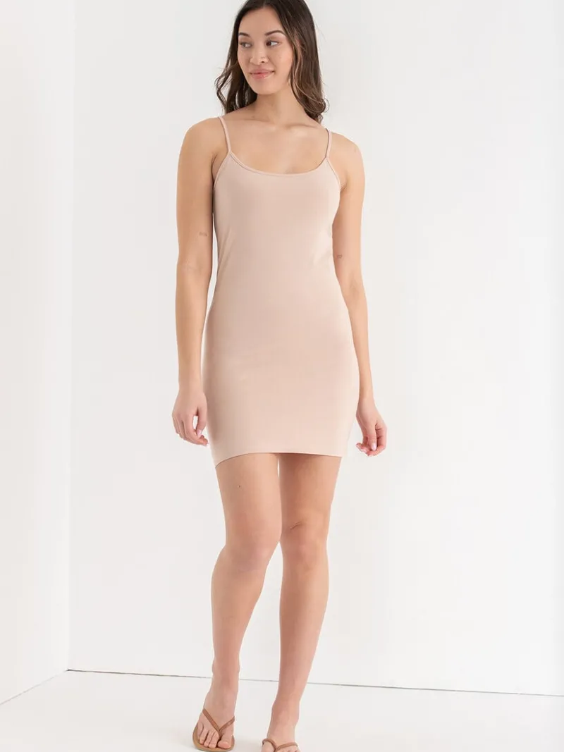 Embrace the versatility of this Long Length Strappy Cami – perfect for layering with its adjustable straps and Spandex fabric that ensures a comfy and flattering fit for all your stylish looks.